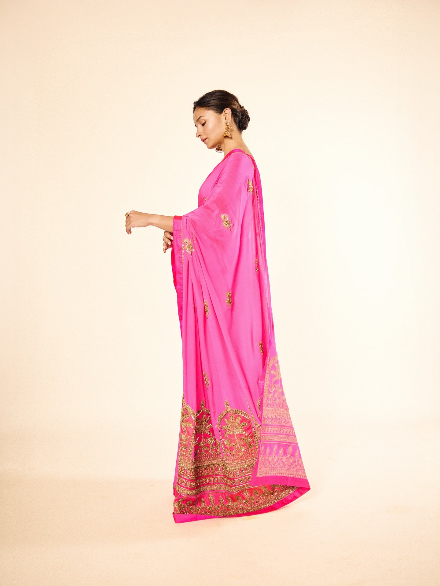 इस साड़ी के साथ उन्होंने मैचिंग पिंक स्लीवलेस ब्लाउज़ कैरी किया, जिसने उनके लुक को सिंपल लेकिन ग्लैमरस बनाया।