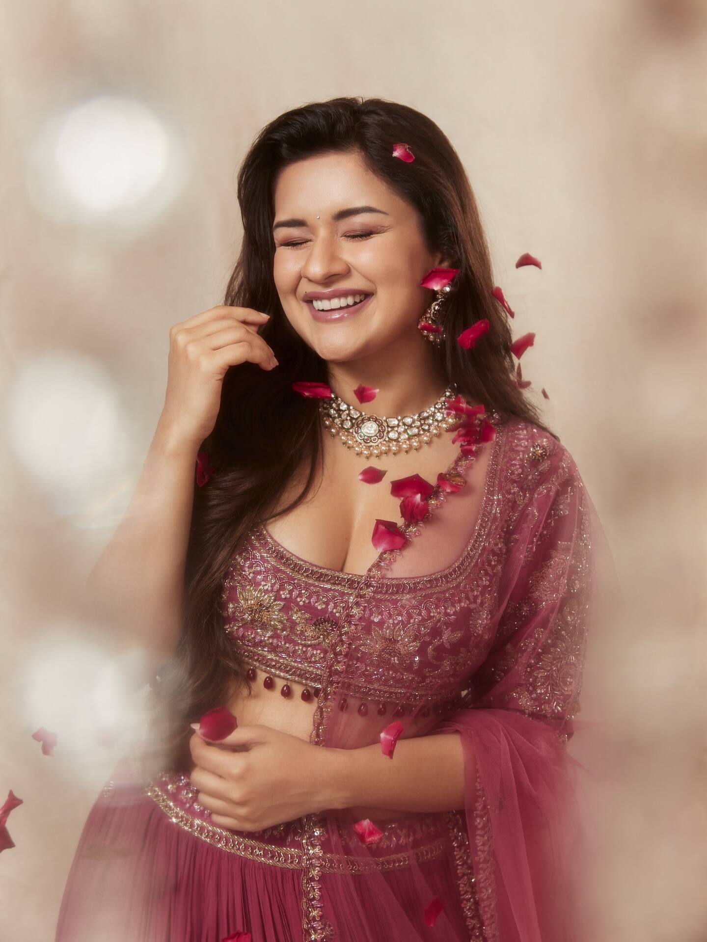 फोटोशूट में गुलाब के पंखुड़ियों की झिलमिलाहट ने लुक को और भी ड्रीम जैसा और रोमांटिक बना दिया।