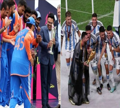 2022 में अर्जेंटीना द्वारा फाइनल में फ्रांस को हराने के बाद मेस्सी ने फीफा वर्ल्ड कप ट्रॉफी को अपने कब्जे में लेने का एक अनूठा तरीका पेश किया था। समारोह के दौरान लेग स्पिनर कुलदीप यादव रोहित को उस प्रसिद्ध मोमेंट के बारे में बताते हुए देखे गए, जिसे भारतीय कप्तान ने कुछ मिनट बाद दोहराया। जश्न का वीडियो सोशल मीडिया के सभी प्लेटफॉर्म्स पर वायरल हो गए हैं।