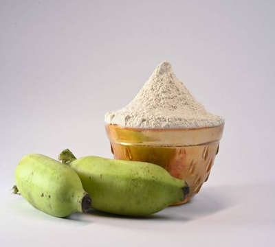 सबसे पहले हरे केले के फलों को सोडियम हाइपोक्लोराइट के घोल से साफ करें। फिर हाथ से छीलकर तुरंत साइट्रिक एसिड के घोल में 5 मिनट के लिए डुबो कर रख दें। इसके बाद फलों को छोटे-छोटे पीस में काट लें। फिर केले के टुकड़े को 60 डिग्री सेल्सियस के तापमान पर हॉट एयर ओवन में सुखाने के लिए 24 घंटो तक रखा दिया जाता है। जिससे केले के टुकड़े पूरी तरह से सूख जाएं। इसके बाद मिक्सी में इन टुकड़ों को डालकर बारीक पीस ले। यह तब तक पीसना है, जब तक महीन पाउडर न बन जाए।