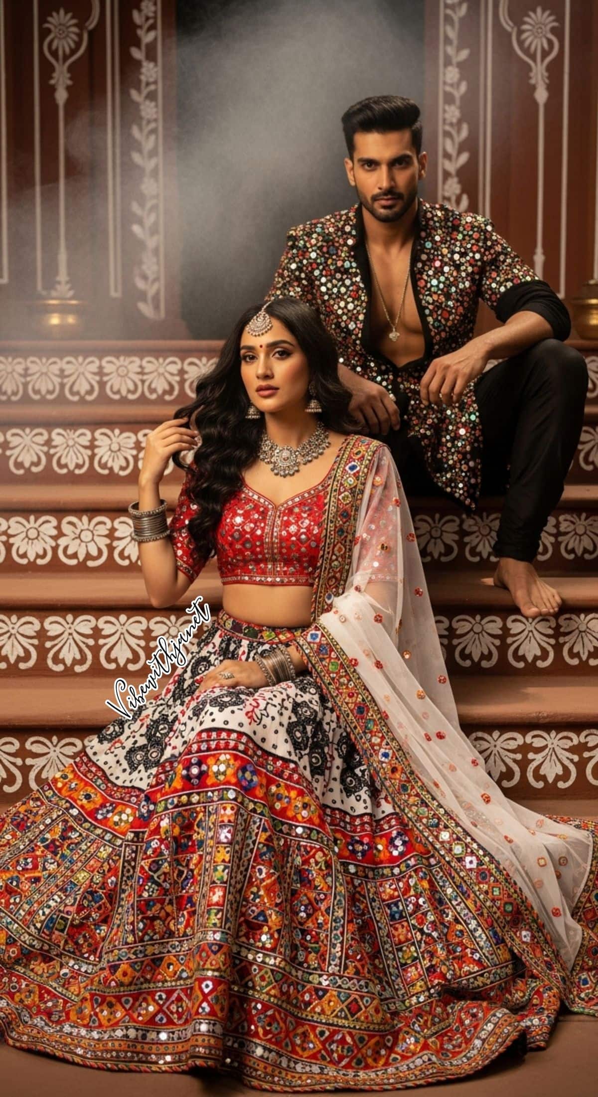 शरारा सूट में कम्फर्ट और ग्लैम दोनों मिलता है।मिरर वर्क टोप से आउटफिट संगीत स्टेज पर और भी ब्राइट दिखता है