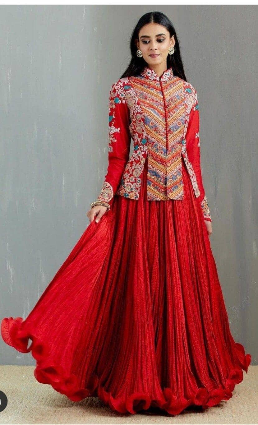 अनारकली को स्कर्ट को कढ़ाईदार जैकेट के साथ स्टाइल किया जा सकता है.