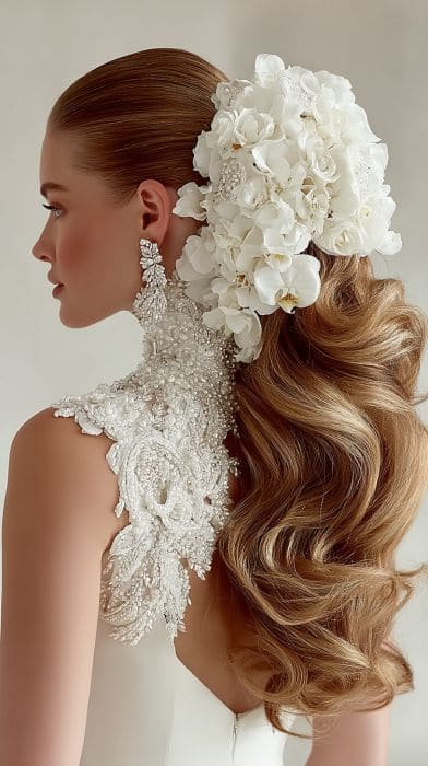 बालों में वेव्स बनाकर एक तरफ बड़े क्रिस्टल स्लाइडर लगाएं। साइड पार्टिंग पतले बालों को वोल्यूम देने का असरदार तरीका है