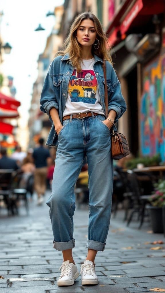 एक ओवरसाइज्ड डेनिम जैकेट को हुडी के साथ लेयर करें, यह स्ट्रीट स्टाइल लुक है जो कम्फर्टेबल भी है
