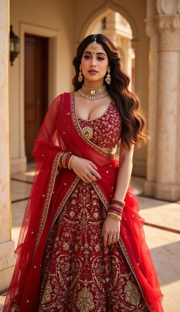 वह बूटी वर्क शरारा सूट और वी-नेक चोली के साथ सिल्क लहंगों में नजर आती हैं, जो रोयल लगते हैं