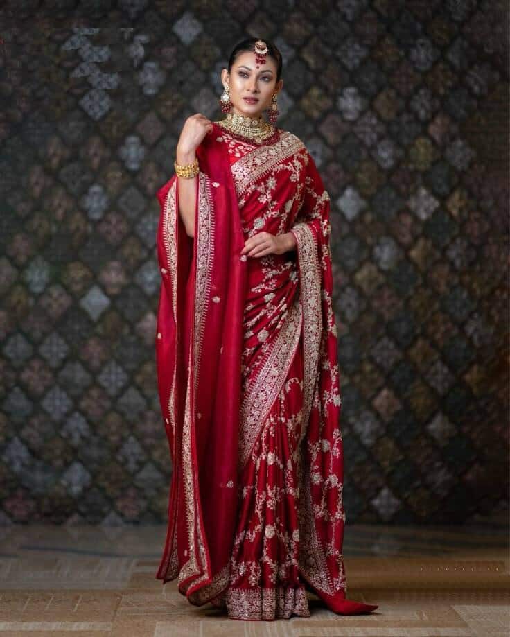 ट्रेडिशनल त्योहारों के लिए, लाल रंग की साड़ी हमेशा ग्रेट चोइस होती है.