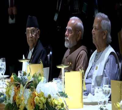 PM Modi Thailand Visit News Updates: प्रधानमंत्री नरेंद्र मोदी और बांग्लादेश की अंतरिम सरकार के प्रमुख मोहम्मद यूनुस बैंकॉक के बिम्सटेक (BIMSTEC) समूह के नेताओं के लिए आयोजित रात्रिभोज में एक साथ बैठे नजर आए। थाईलैंड की प्रधानमंत्री पैतोंगतार्न शिनवात्रा ने इस भोज की मेजबानी की। यूनुस के कार्यालय ने कुछ तस्वीरें शेयर कीं, जिसमें चाओ फ्राया नदी के तट पर स्थित होटल 'शांगरी-ला' में बांग्लादेश की अंतरिम सरकार के प्रमुख को पीएम मोदी के बगल में बैठे देखा जा सकता है।